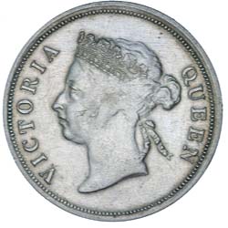 STRAITS SETTLEMENTS, Queen Victoria, five cents, 1891 (KM.10). Some minor spotting, small dent on Queen's ...
