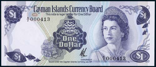 CAYMAN ISLANDS, Elizabeth II, Cayman Islands Currency Board, one dollar, 1972 (P.1b); one dollar, 1996 ...