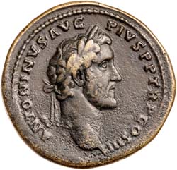 ANTONINUS PIUS, (A.D. 138-161), AE sestertius, (25.76 g), Rome mint, issued A.D. 143, obv. laureate ...