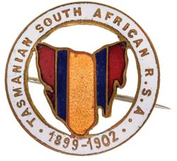 TASMANIAN SOUTH AFRICAN R.S.A. (Returned Soldiers Association), 1899-1902, lapel badge in voided gilt and enamel (26mm), by Golding, pin-back, reverse numbered 246. Good very fine and scarce.
