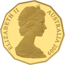 ELIZABETH II, proof gold fifty cents, 2009, (40th anniversary of the twelve sided fifty cents). ...