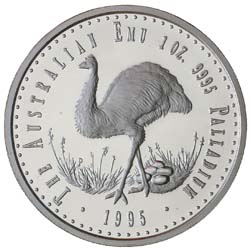 ELIZABETH II, Perth Mint, proof one ounce .995 fine palladium emu, 1996, with five dollar ...