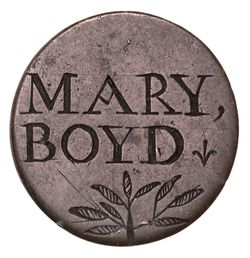 CONVICT LOVE TOKEN, c1820, a shaved down Georgian halfpenny, obverse inscribed, 'MARY/BOYD' and below is ...