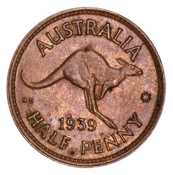 GEORGE VI, 1939 kangaroo reverse. Traces of red, good extremely fine and scarce thus.