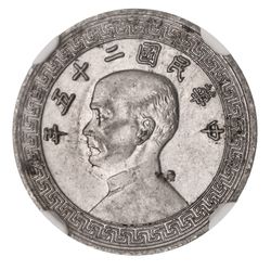 CHINA, Republic, cupro-nickel five cents, yr. 25 (1936) (KM.Y.348.1). Nearly uncirculated.