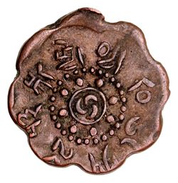 TIBET, Sho-Srang Coinage, copper issues, 7 and 1/2 skar, Dode mint, 15-43 (1909) rare holed ...