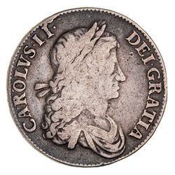 CHARLES II, shilling, first bust, 1663 (S.3371). Toned, nearly very fine.