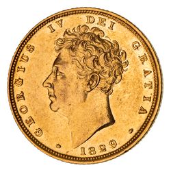GEORGE IV, sovereign, bare head left, 1829 (S.3801). Extremely fine.