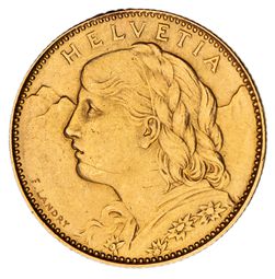 SWITZERLAND, ten francs, 1922B (KM.36). Nearly extremely fine.