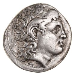 THRACE, Kingdom of, Lysimachos, (323-281 B.C.), silver tetradrachm, (16.98 g), Amphipolis mint, 288/7-282/1 B.C., obv. head of Alexander to right, with diadem and horn of Ammon, rev. Athena enthroned to left, supporting Nike, spear behind, monograms of MTO to left and XEA in exergue, to right **BASILEWS* to left **LUSIMACOU*, (cf.S.6816, Thompson 214, Muller 535, HGC 3, 1750l). Nearly very fine with grey patination, rare.