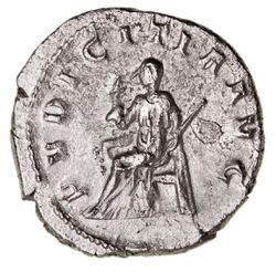 HERENNIA ETRUSCILLA, (wife of Trajan Decius), (A.D. 249-251), silver antoninianus, Rome Mint, issued 250, (4.14 g), obv. diademed draped bust to right on crescent, around HER ETRVSCILLA AVG, rev. Pudicitia seated to left drawing veil from face holding transverse sceptre, around PVDICITIA AVG, (S.9495, RIC 59b, RSC 19). Extremely fine.