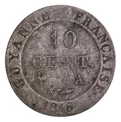 FRANCE, Napoleon (1799-1814), bell metal 5 centimes 1808BB (KM.149); billon ten centimes, 1808A (2), 1808I, 1808BB, 1809A(2) 1809I (2), 1809BB, 1810B, 1810I, another uncertain (KM.150); together with French Guiana, 10 centimes 1818A (KM.1), (illustrated). Very good - very fine. (14)