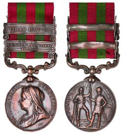 INDIA, single, India Medal 1895-1902, - two clasps - Punjab Frontier 1897-98, Tirah 1897-98. Pte ...