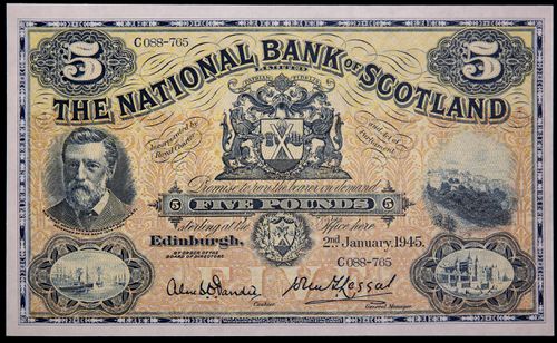 SCOTLAND, The National Bank of Scotland Limited, five pounds, Edinburgh, 2nd January, 1945, C088-765, (P.259d, SC.512e). Good extremely fine.