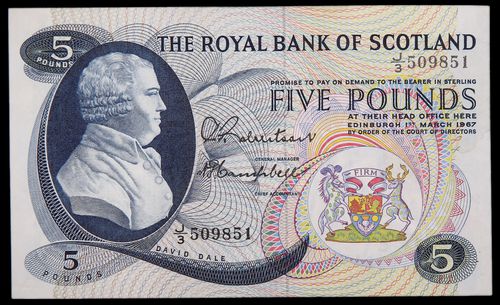 SCOTLAND, The Royal Bank of Scotland, five pounds, Edinburgh, 1st March 1967, J/3 509851 (P.328, SC.809). Good extremely fine.