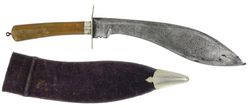 NEPAL KHUKURI, c1870, with a curved steel blade (length ignoring curve 19cm), with a fuller ...