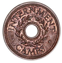 COMMONWEALTH OF AUSTRALIA, World War II Internment Camps, penny. Reverse toned, otherwise extremely fine.