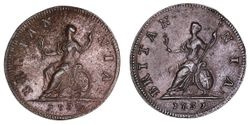 GEORGE II, young head, copper farthings, 1730 (Peck 854) and 1731 (Peck 858)(S.3720). Attractive light to medium brown patinas, virtually extremely fine. (2)