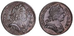 GEORGE III, first copper issue, farthings, 1773 (S.3775; Peck 911) leaf to N, another leaf ...
