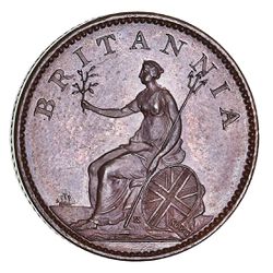 GEORGE III, fourth issue period, pattern copper farthing, 1805, bronzed proof restrike (Peck 1319). Brilliant ...