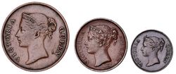 STRAITS SETTLEMENTS, Queen Victoria, East India Company copper quarter, half and one cent, 1845 (KM.1,2,3). ...