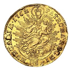 HUNGARY, Maria Theresa (1740-1780), gold ducat, (3.44 g), 1762 KB Kremnitz mint, (KM.329.2 Huszar 1652). Good very fine, has been mounted, scarce.