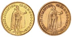 HUNGARY, Franz Joseph, ten korona, 1894 and 1912 (KM.485). Nearly extremely fine. (2)
