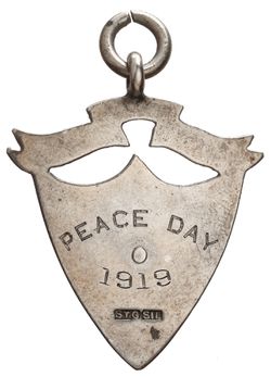 PEACE DAY, 1919, fob medal in silver and gold (30x28mm), no maker, ring top suspension, ...