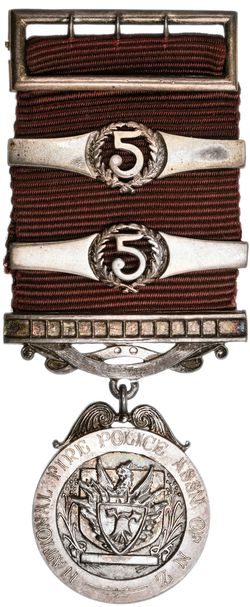 NATIONAL FIRE POLICE ASSN OF NZ, struck in silver (30mm), with (2) 5 Years Service ...