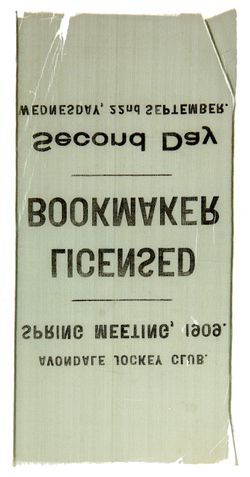 AUCKLAND RACING CLUB, and Avondale Jockey Club, 1908-10, a series of bookmaker's silk race-day badges (mostly 150x73mm), for 'Licensed Bookmaker' (20) and 'Bookmaker's Clerk' (4), several different colours. Varying degrees of tattiness, fair - fine and very rare. (24)