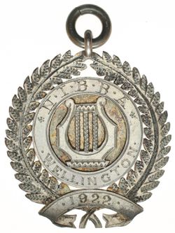 N.I.B.B.A. (North Island Brass Band Association), Wellington, 1922, fob medal, handcrafted in silver (40x35mm), no ...