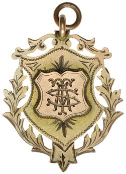 TARANAKI AGRICULTURAL SOCIETY, fob medal, hand engraved in gold (15ct, 6.8g, 30x27mm), no maker, ring ...