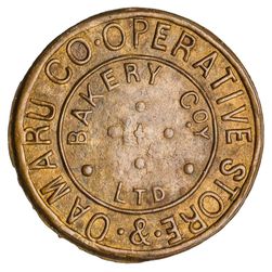 OAMARU CO-OPERATIVE STORE & BAKERY CO. Ltd., no denomination (possibly 1d), uniface, struck in copper ...
