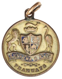W.C.C. (Wellington City Council) Tramways, in gold (9ct, 8.3g, 26mm), by M&K (Mayer & Kean, ...