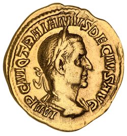 TRAJAN DECIUS, (A.D. 249-251), gold aureus, issued 249-251, Rome Mint, (4.08 g), obv. laureate and ...