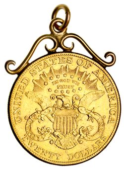 USA, TWENTY DOLLARS OR DOUBLE EAGLE, 1906S Liberty head (35. 59g). Set with thick scroll mount, very fine.