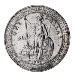 BRITISH TRADE DOLLAR, 1908B (KM.T5). Mud stain on reverse, cleaned, otherwise well-struck, good extremely fine. ...