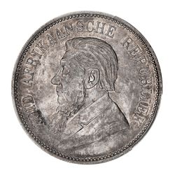 SOUTH AFRICA, ZAR, Paul Kruger, silver five shillings, 1892, double shaft (KM.8.2). Underlying mint bloom, minor contact marks, otherwise good extremely fine and rare in this condition.