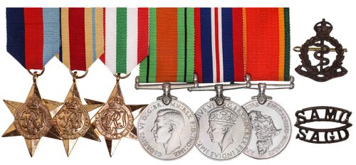 SCARCE GROUP OF SIX TO JEWISH PHARMACIST: 1939-45 Star; Africa Star; Italy Star; Defence Medal 1939-45; War Medal 1939-45; Africa Service Medal 1939-45. 36243 I.Swil. All medals impressed. Swing mounted, contact marks, otherwise extremely fine.