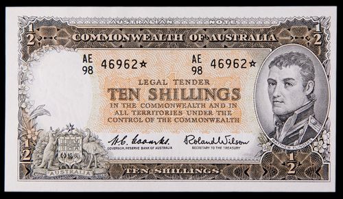TEN SHILLINGS, Coombs/Wilson (1954) AC/97 11072* (R.16s). Crisp, virtually uncirculated and very rare.