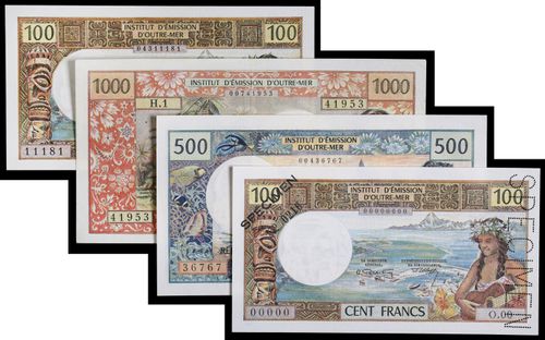 NEW CALEDONIA, French Administration, Noumea, 1969 issue 100 francs (P.59, 59s); 500 francs (p.60a, c); ...