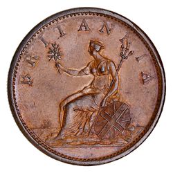 GEORGE III, fourth copper issue, penny, 1806, incuse hair curl (S.3780). Obverse small carbon spot ...