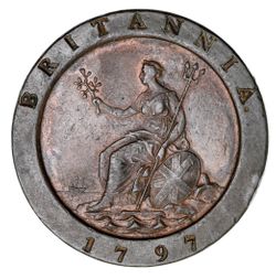 GEORGE III, copper "cartwheel" twopence, 1797 (S.3776). Very fine.