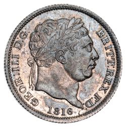 GEORGE III, new coinage, shilling, 1816 (S.3790). Iridescent toning, nearly uncirculated.