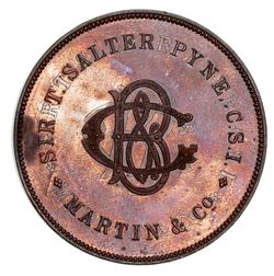 GEORGE III - ELIZABETH II, assorted minting medals, checks, canteen tokens, India, Nepal (15), passes, Majority British, Greenwood & Batley (Bombay), Pope, Taylor & Challen, including WM. Till and J. Henry tokens, Sydney Mint George V medal in bronze, A. McP. Kilgour, described on nine album pages and W.J. Noble Collection lot 1162 Sale 61B card; India includes Pridmore 171a,b, 174, weight 178.12 grains. Very good - uncirculated. (150)