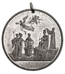 PRINCESS VICTORIA, 18th Birthday 1837, white metal 45mm by Halliday, (BHM 1738, R); Visit of ...