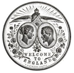 VISIT OF VICTORIA TO MANCHESTER 1851, white metal 51mm by Allen and Moore (BHM 2415); ...