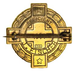 P(RIMARY) T(RAUMA) C(ARE) OF N.S.W. First Aid Corps, Life Member badge in gold (9ct; 10.37g; 27x27mm), pin-back, reverse marked Efficient and inscribed, '1977/J.Fischer'. Extremely fine.