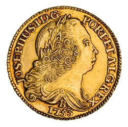 BRAZIL, Joseph, Gold 6,400 reis or half Johanna, 1753 B (Bahia) (KM.172.1). Nearly extremely fine. ...