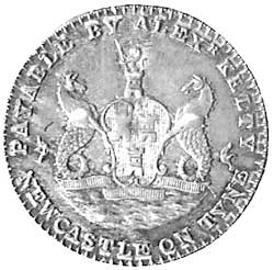 NORTHUMBERLAND, Newcastle, Alexr. Kelty's shilling, 1812, arms/colliery (D.8, [illustrated]), John Robertson's shillings, 1811, arms/female seated ...